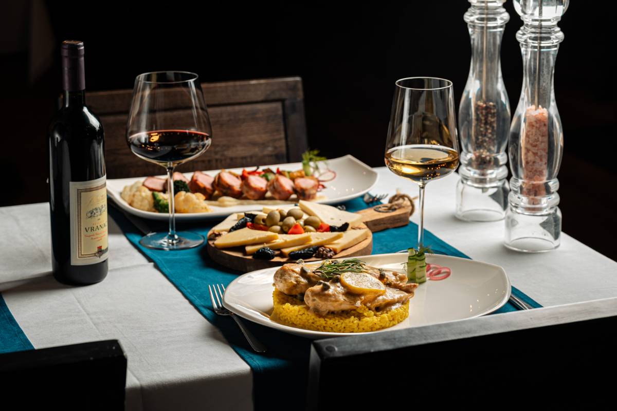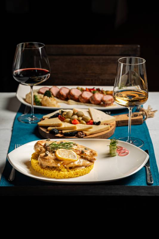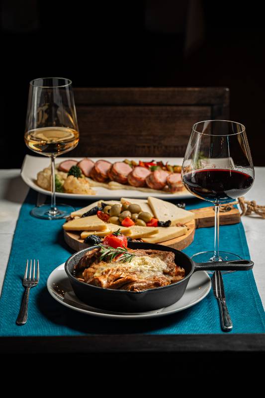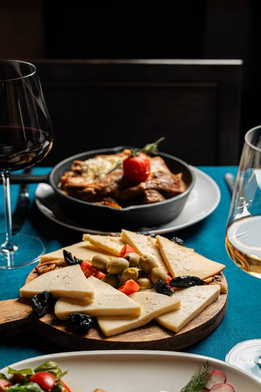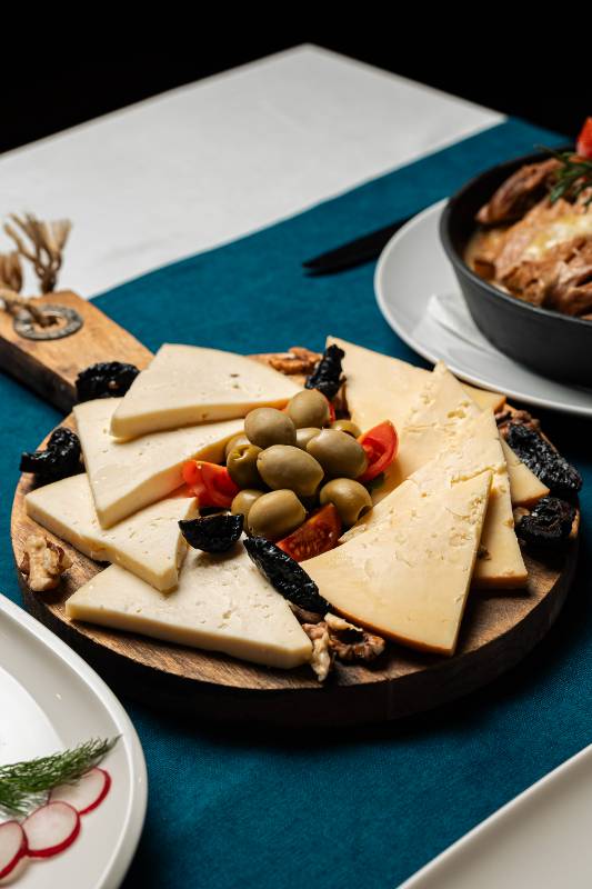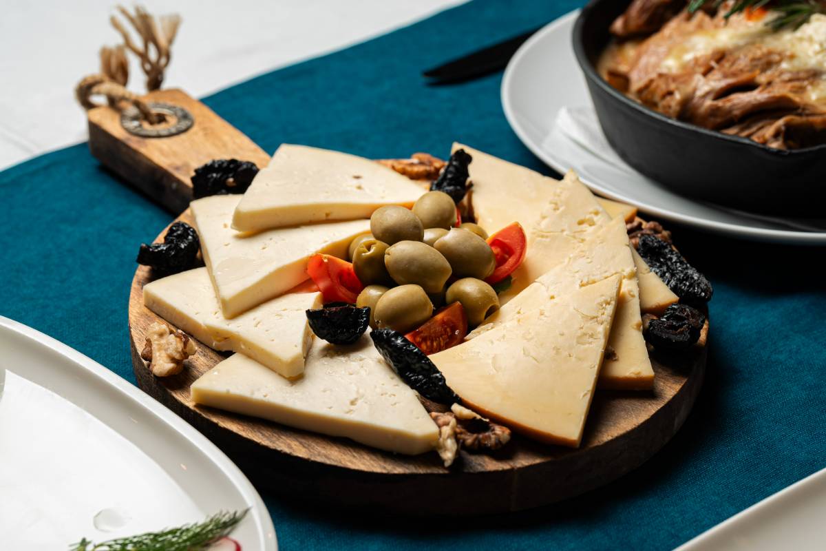 svinjski pršut, govedi pršut, njeguški sir, planinski sir, mocarela, humus,pate od maslina,