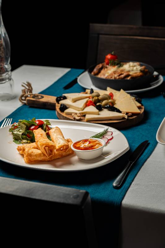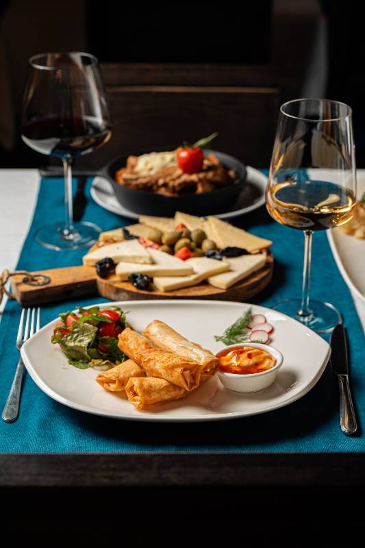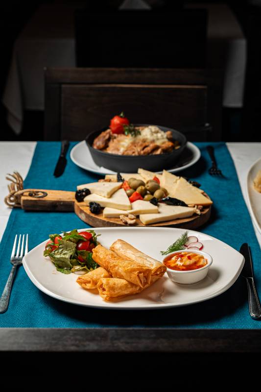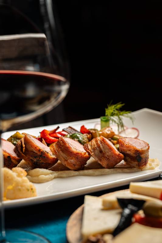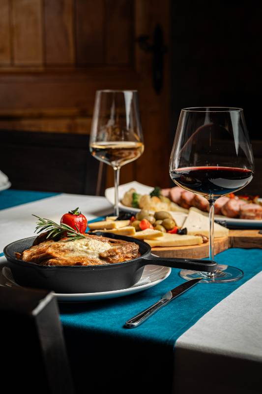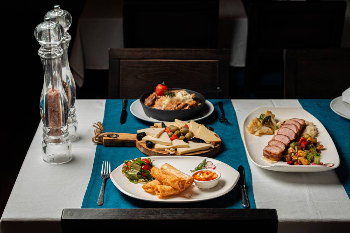 svinjski pršut, govedi pršut, njeguški sir, planinski sir, mocarela, humus,pate od maslina,